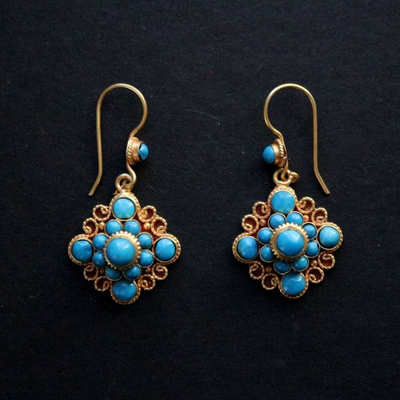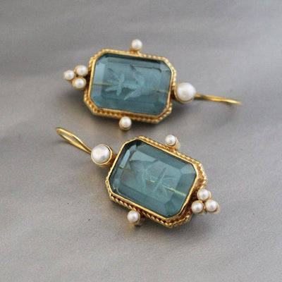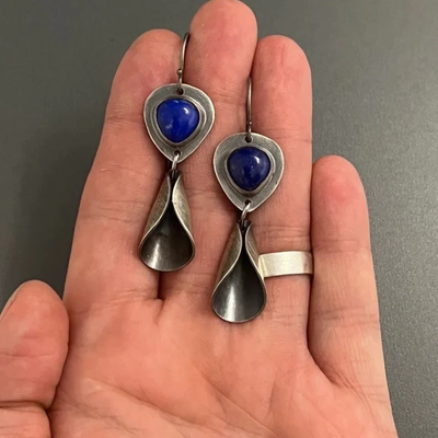 Vintage Blue Stone Gold & Silver Plated Earrings