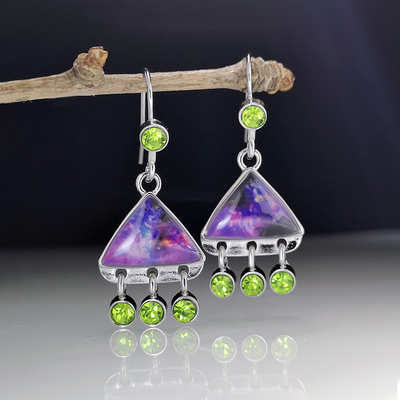 Vintage Colorful Zirconia Golden Leaf Earrings