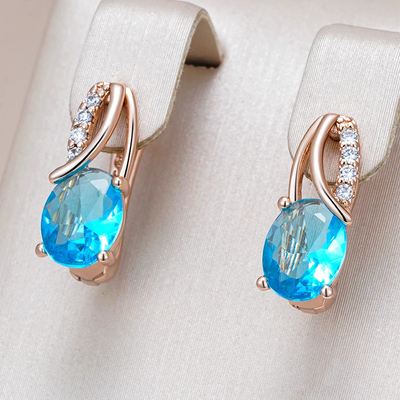 Elegant Blue Crystal Gold Earrings
