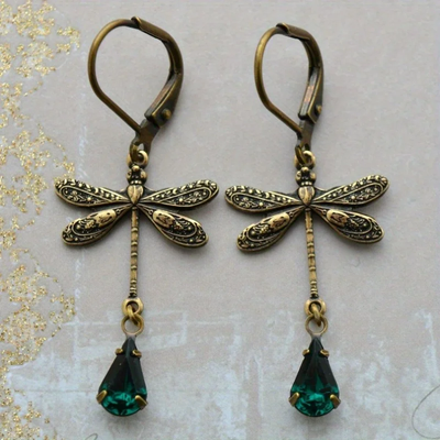 Vintage Golden Dragonfly Earrings