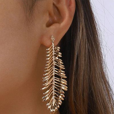 Vintage Golden Dangling Leaf Earrings