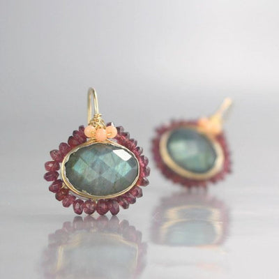 Vintage Inlaid Garnet Crystal Earrings