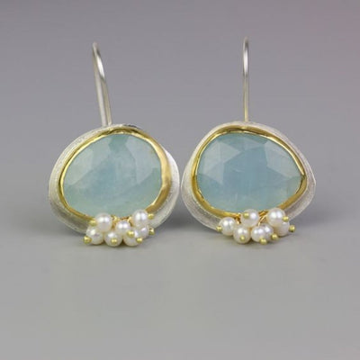 Vintage Inlaid Silver Pearl Leaf Earrings