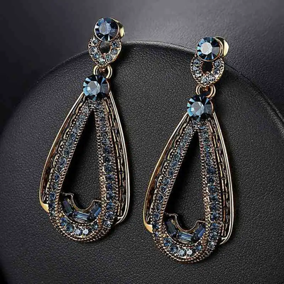 Elegant Blue Crystal Heart Rain Earrings