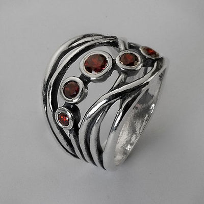 Vintage Red Crystals Layered Silver Ring