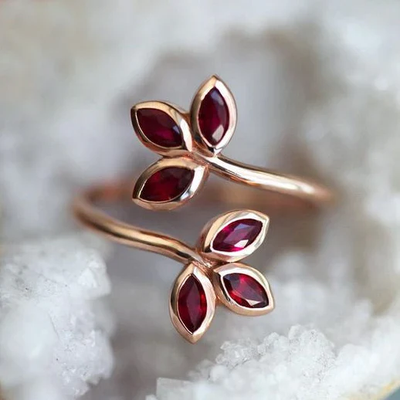 Vintage Red Leaf Gold Ring