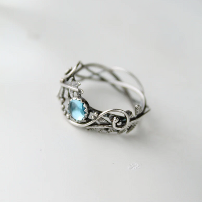 Vintage Blue Inlaid Crystal Silver Forged Ring