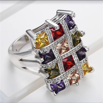 Vintage Colorful Inlaid Zirconia Silver Ring