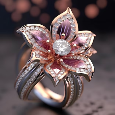 Exotic Pink Flower Crystal Ring